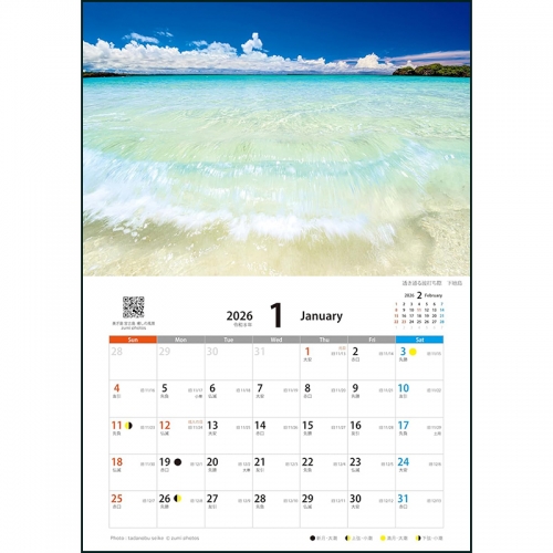 旧暦、六曜、二十四節気、月の満ち欠けも記載。