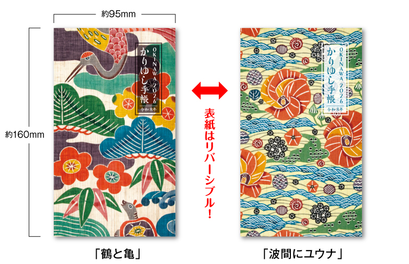 かりゆし手帳2026 令和8年 ポケットサイズ 紅型工房べにきち「鶴と亀」&「波間にユウナ」